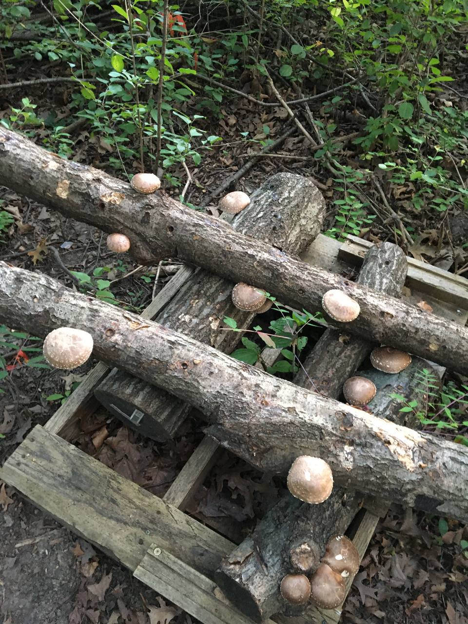 Although these shiitake logs are several years old, they are still in excellent shape and are in the tail end of their prime for producing. We can’t offer our usual guarantee that these logs will all produce, but there’s a good chance most of them will. We have logs that have produced for upwards of 6-7 years, so this is your chance to roll the dice and get a grab bag of cheap logs for a pile of your own in your backyard.